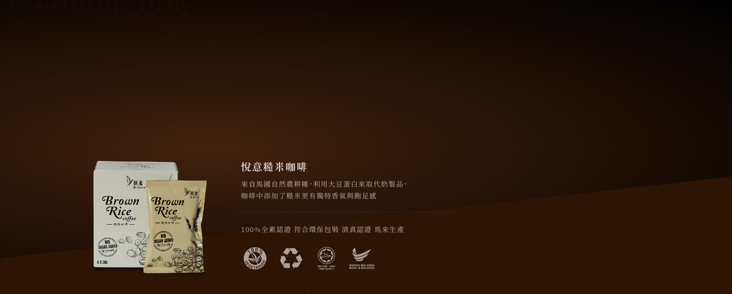 來自馬國自然農法,利用非基因改造的大豆蛋白來取代奶製品,咖啡中添加了糙米更有獨特香氣與飽足感,是一款非常適合大眾飲用的咖啡。