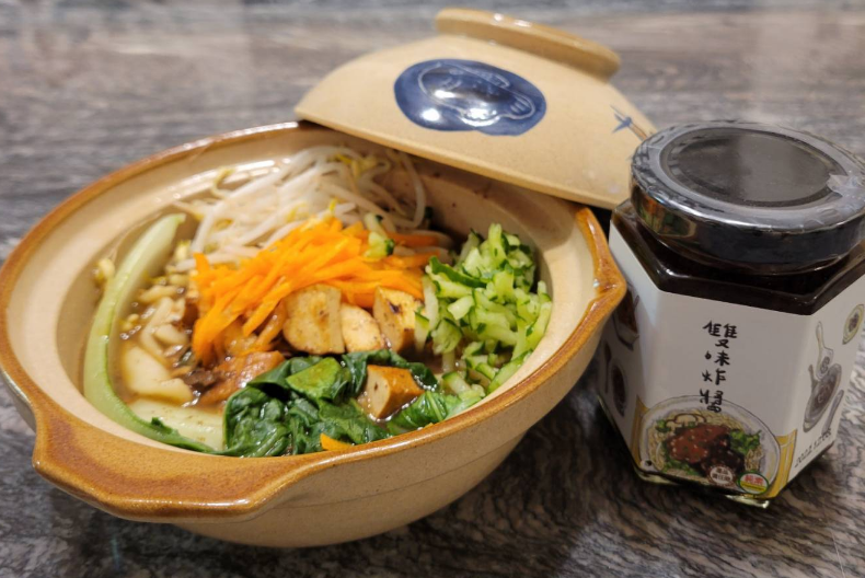 國民好醬料,只要將冰香常備的紅蘿蔔跟香菇、綠色葉菜加入雙味炸醬跟菜脯XO醬拌一拌,是一道作法容易具美味的家鄉麵。