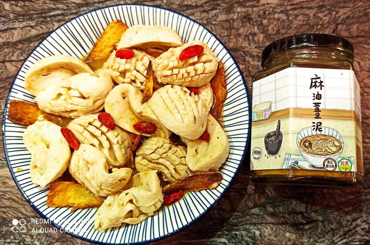 有時候真心的覺得有【醬】萬事足!厚實脆口的素腰子拌炒著麻油薑泥是一道秋冬暖胃補身的好食補。